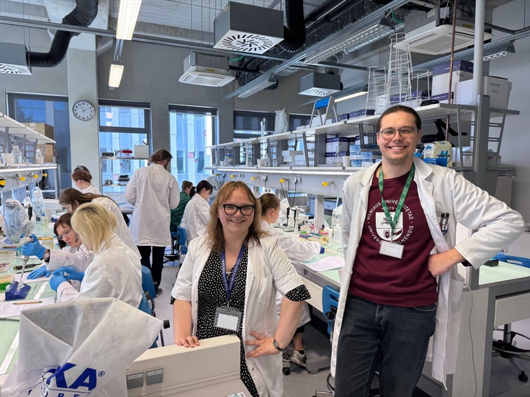 Šiais metais (2025 m.) balandžio 26 dieną antrą kartą pakvietėme Lietuvos STEAM centrų metodininkus į Lietuvos mikrobiologų draugijos pasiūlytus ir suorganizuotus mokymus VU Gyvybės mokslų centre.