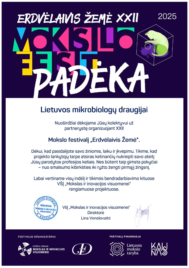 VIII-oji Tarptautinė mikroorganizmų diena mokslo festivalyje "Erdvėlaivis žemė"